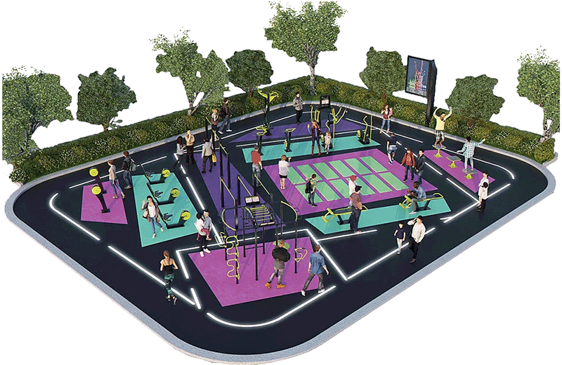 You're in the right place to design the best outdoor fitness spaces. This page is perfect for landscape architects and partners working on outdoor gym projects. We know how much work goes into your landscape designs. Get all the tips and tools to design a safe and inclusive outdoor gym. Download the files you need to incorporate your gym ideas in your presentations and CADs.
